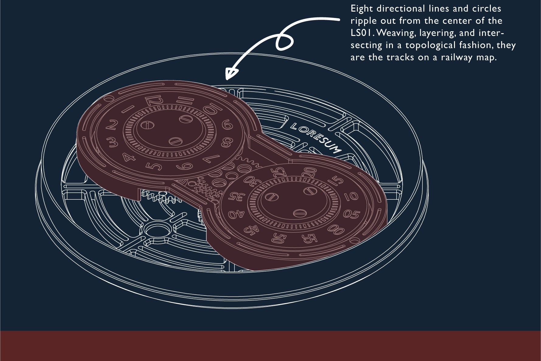 When Harry Beck created his map, he was working from an electrical schematic. With the smarts of an engineer and the creativity of a designing mind, the product was both aesthetically pleasing and useful. LORESUM’s first watch, the LS01 is based on the same concept. Combining the modern (3D) with the classic (2D) along with the artistry of a graphic designer, we developed the masterpiece Chan envisioned.