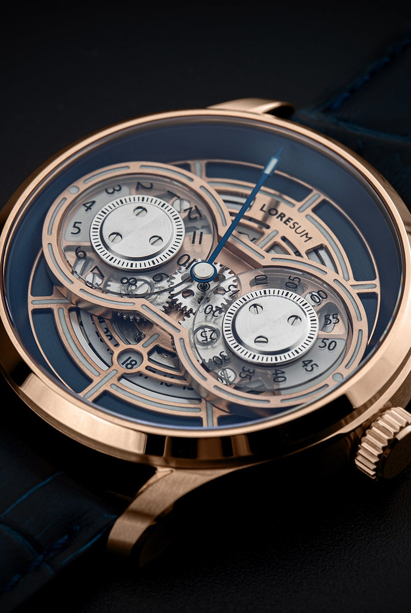 LS01 is the product of this journey. Deeply inspired by Beck’s legacy, Chan reinterpreted his map into the form of a tasteful timepiece. Eight directional lines and circles ripple out from the centre of the LS01. Weaving, layering, and intersecting in a topological fashion, they are the tracks on a railway map. These, in turn, span several vertical levels as the tunnels do underground. A ‘station’ in the form of two rotating discs sits on top. Chan finishes this rendition of mechanical beauty with the exposing of the inner gears.