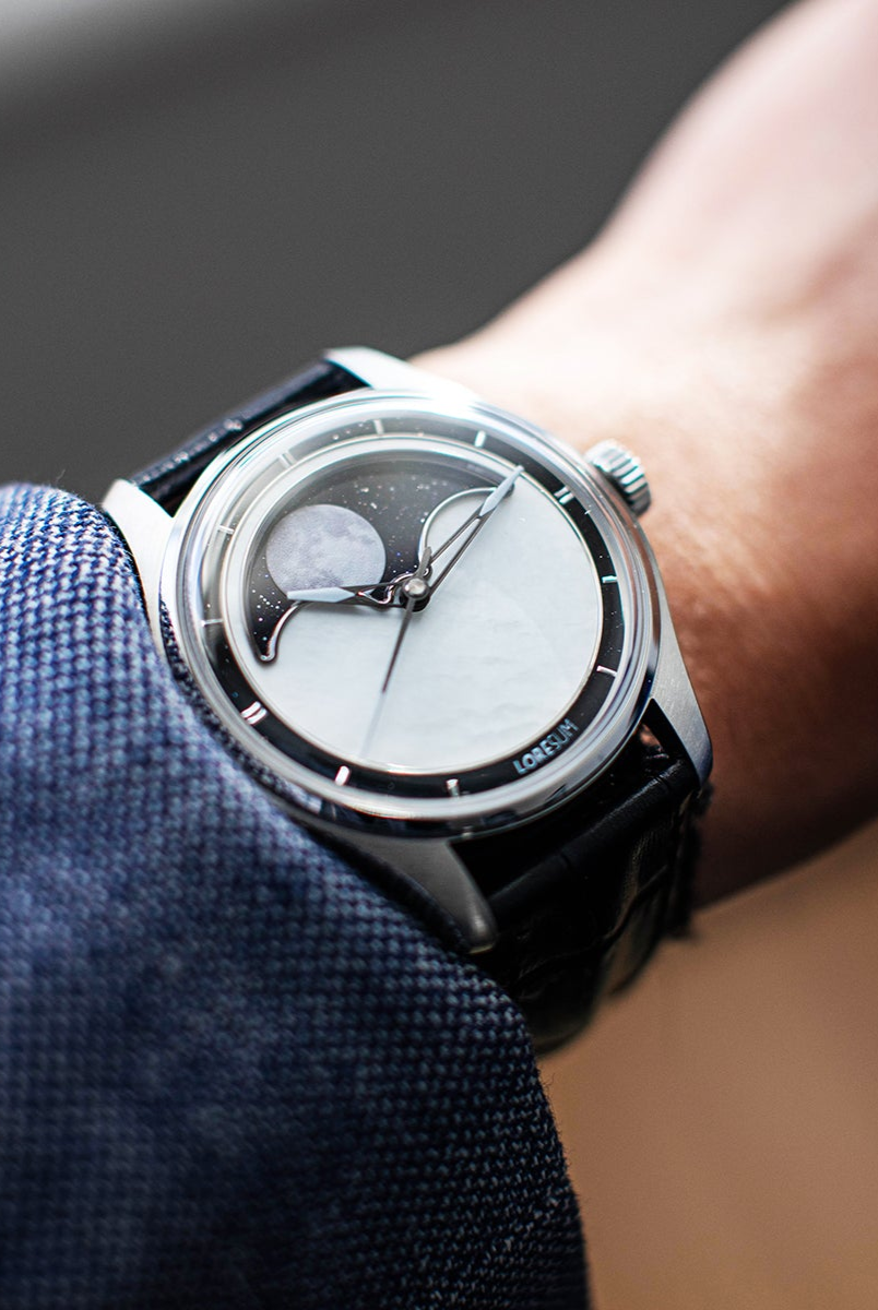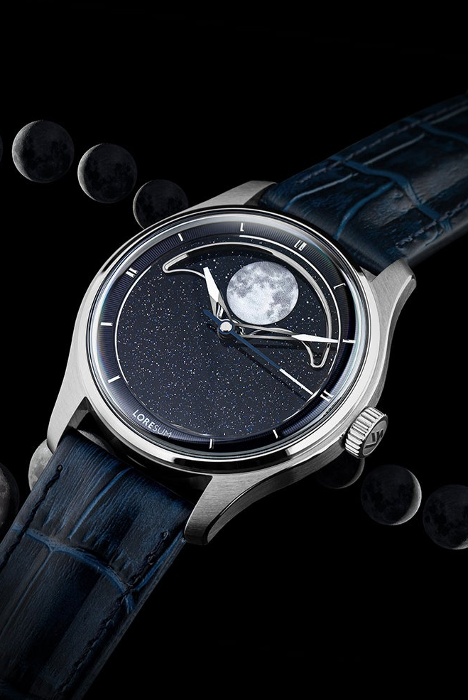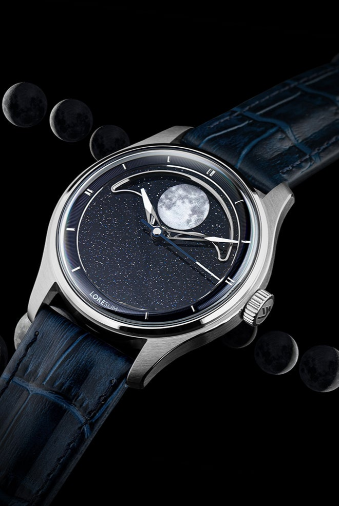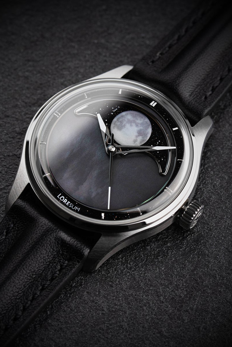 The Loresum LS04 Collection combines precise craftsmanship with a 29.5-day true moonphase module, powered by either a Miyota 9015 or Sellita SW200-1 movement for reliable performance. Choose from stunning dial options: deep aventurine, luxurious mother-of-pearl, or classic onyx. The LS04 is a blend of elegance and functionality, perfect for those who value both elegance and style.